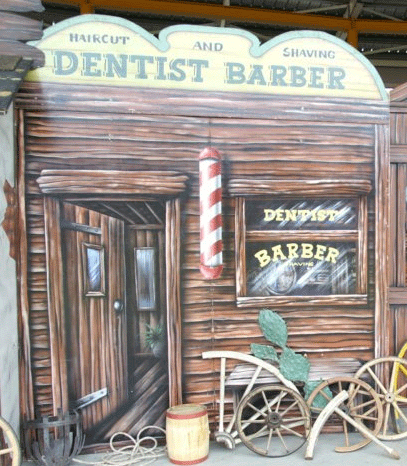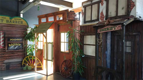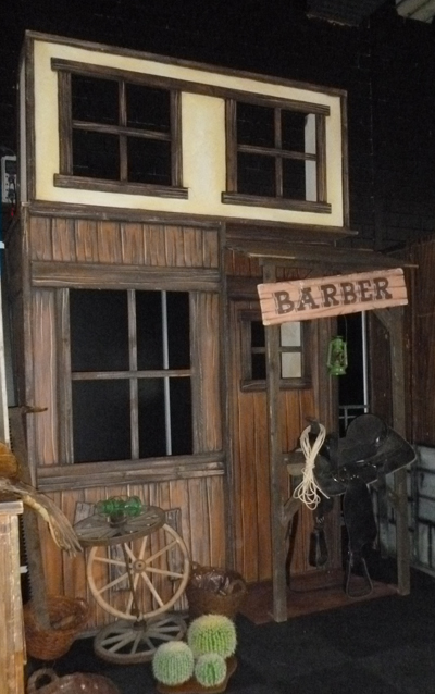 ![]() Barbierhuis met aanvulling van karrewielen,cactussen en westernzadel Westernstraatje opgebouwd in Koningshof te Veldhoven westerndecor in 3d uitvoering |