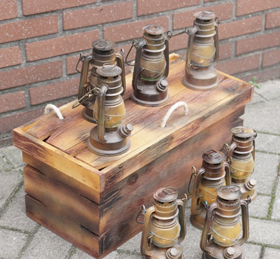 ![]() Westernbarretje gemaakt met twee vaten , twee olielampen en western signbord met legplank |