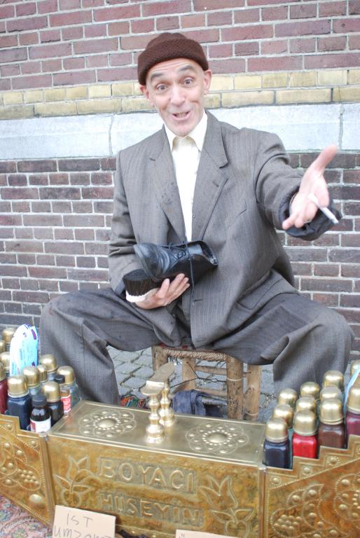 Turkse Schoenpoetser straattheateract en animatieact Boyaci Huseyin De authentiek ogende Boyaci Huseyin vindt zijn oorsprong in de schoenenpoetsers zoals Frans die zelf heeft ervaren in Istanbul. Hij spreekt in deze act echt Turks en hij poetst de schoenen met echt Turks materiaal. Het is niet meteen duidelijk dat het om een niet-Turk gaat, maar zodra de toeschouwers op hem reageren komt al snel zijn maffe karakter tevoorschijn. Naast het theatrale element geeft Boyaci Huseyin ook een mooi visueel beeld. Frans heeft zich gespecialiseerd in natuurlijk theater. Behalve Boyaci Huseyin speelt Frans ook Miep, Herr Trut, Votre Zjean, Zwarte Pietje, Het Clowntje en Het Fundament.