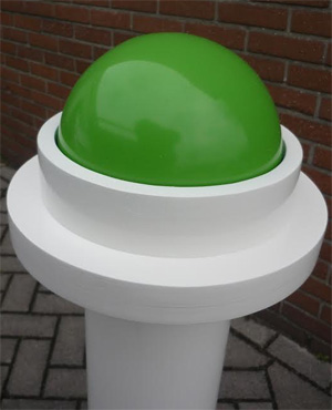 een symbolische duurzame bouwhandeling. U kunt ook kiezen om een sticker op deze sleutel te plakken met uw eigen tekst of logo. Deze handeling kan uitgevoerd worden door 1, 2 of 3 personen. De kast is te plaatsen op een bijgeleverde chromen onderstel / voet maar kan ook gewoon ergens opgezet worden. De knop werkt op een accu en kan met een