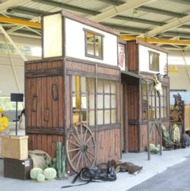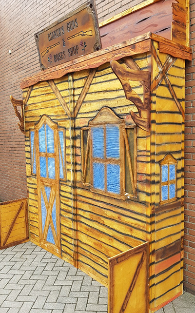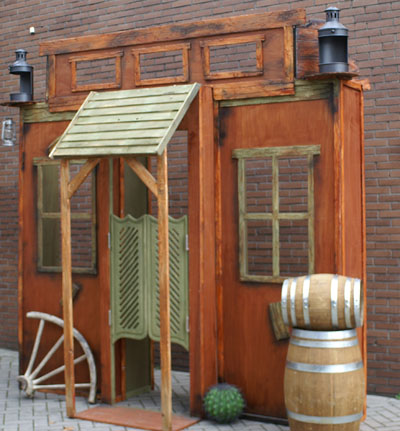 ![]() Barbierhuis met aanvulling van karrewielen,cactussen en westernzadel Westernstraatje opgebouwd in Koningshof te Veldhoven westerndecor in 3d uitvoering |