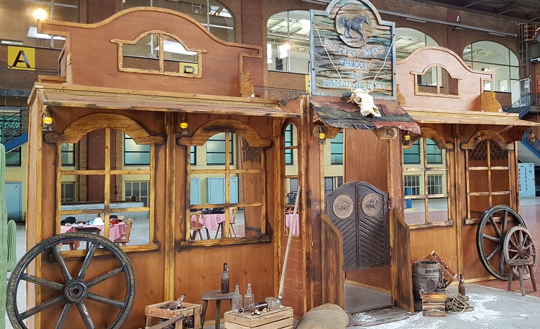 Country en westernhuisjes huren. Met de juiste decors en decoratiemiddelen weet ESL uw feest in de juiste sfeer te brengen. De meeste decors zijn eenvoudig en snel op te zetten, bovendien zijn ze ook veel decors op afhaalbasis te huur. We hebben grote 3d huisjes waar je direct een Saloon of General store kan inlopen, maar we hebben ook mega grote backdrops cq achtergronddoeken met een lengte van 20m breed en ruim 4,5 m hoog. Natuurlijk kunnen we uw country en westernfeest geheel verzorgen. ESL neemt voor u de regie in handen en regelt het country en westernfeest tot in de puntjes (van A tot Z) Van de aankleding tot en met de barbeque, eten en drinken met natuurlijk het entertainment.